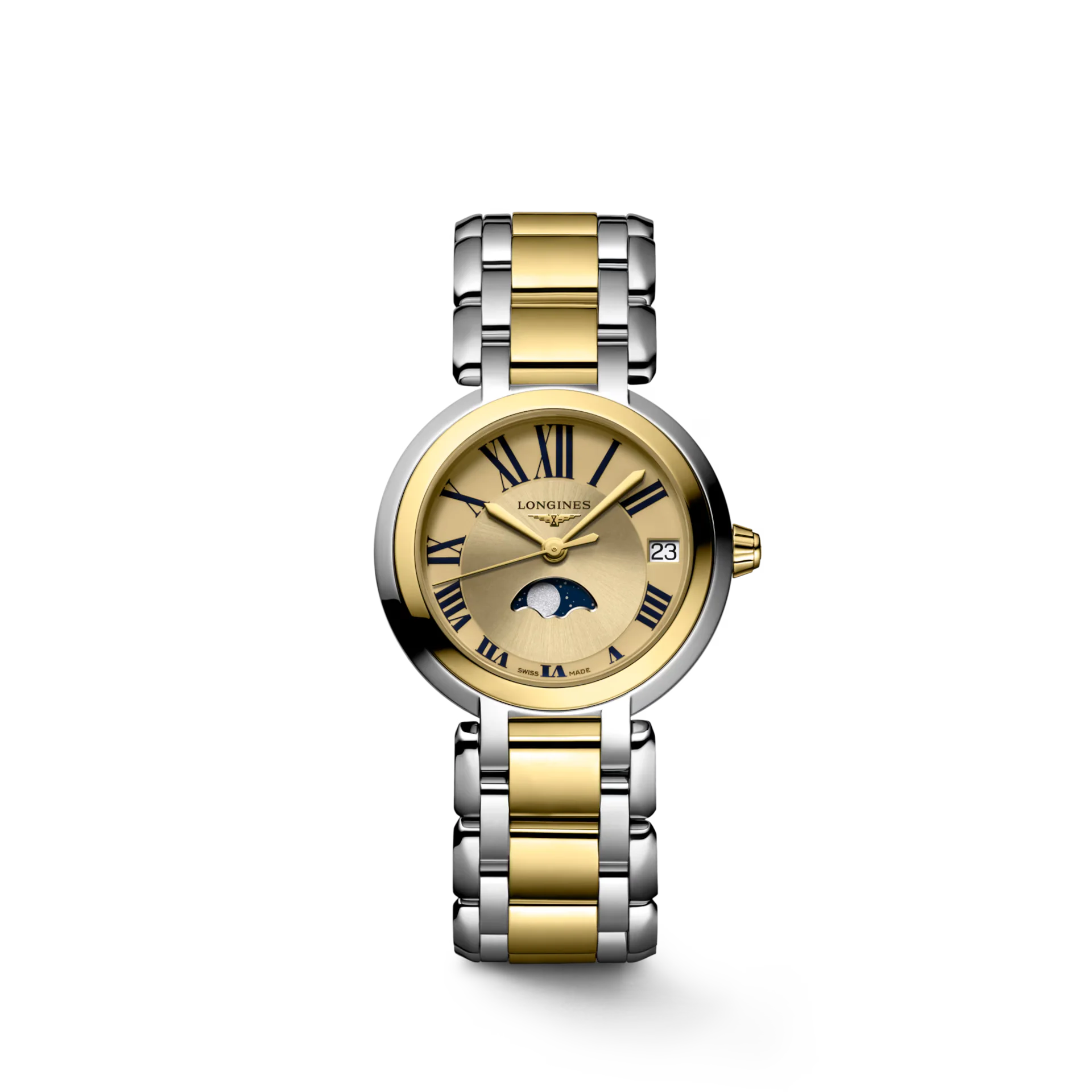 Longines PrimaLuna Moonphase Quartz 30.50mm, Gilt Dial, Stainless Steel and 18 Karat Yellow Gold
